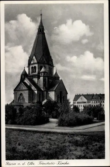 Ak Riesa an der Elbe Sachsen, Trinitatiskirche