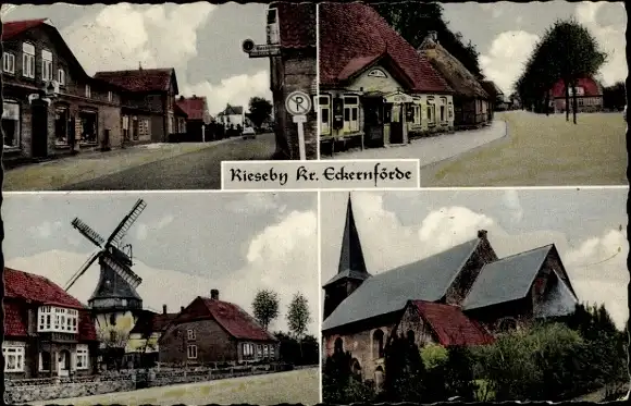 Ak Rieseby in Schleswig Holstein, Kirche, Straße, Windmühle