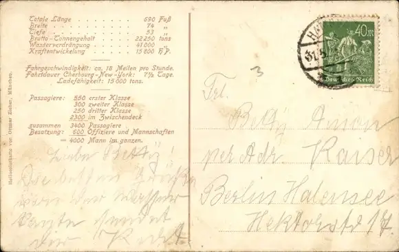 Ansichtskarte, Postkarte, HAPAG, Hamburg Amerika Linie