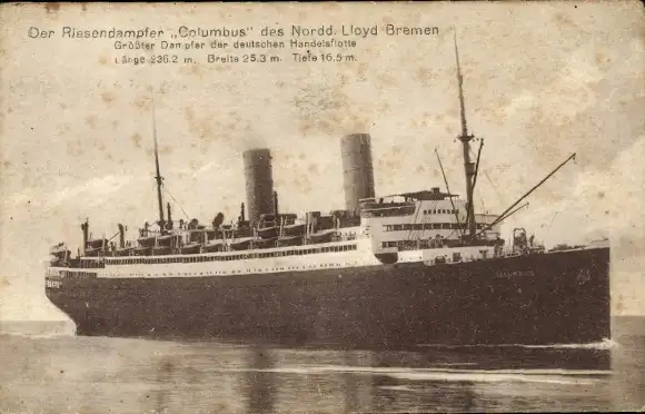 Ak Riesendampfer Columbus des Nordd. Lloyd Bremen