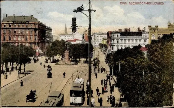 Ak Riga Lettland, Alexander Boulevard, Straßenbahn