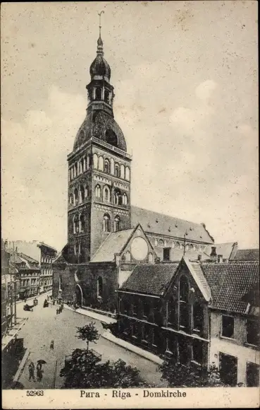 Ak Riga Lettland, Ansicht der Domkirche, Vorplatz