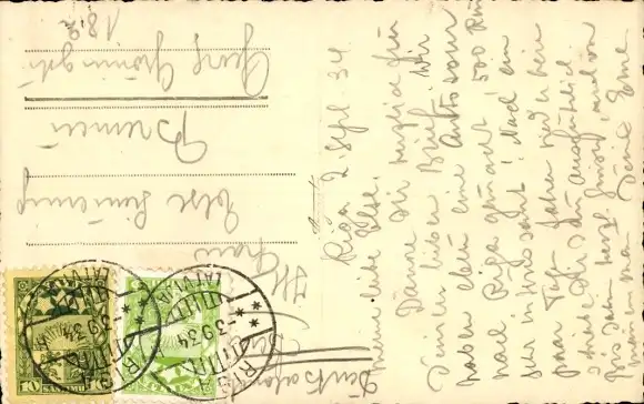 Zustand, siehe Scan, gelaufen, 1934 - ca 9 cm X 14 cm