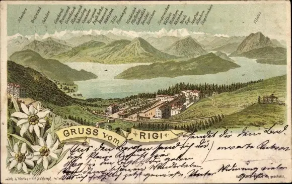 Ak Rigi Kulm Kanton Schwyz, Gebirgspanorama, Edelweiß, Ortschaft