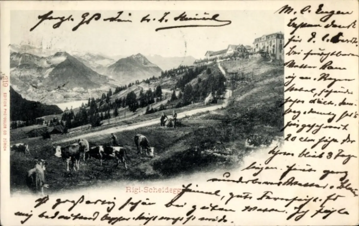 Ak Rigi Scheidegg im Allgäu Schwaben. Kühe auf der Weide