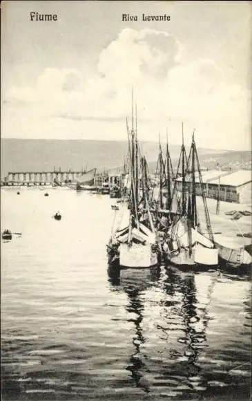 Ak Rijeka Fiume Kroatien, Riva Levante, Hafen