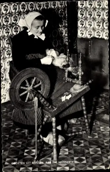 Ak Rijssen, Frau in Tracht, Spinnrad