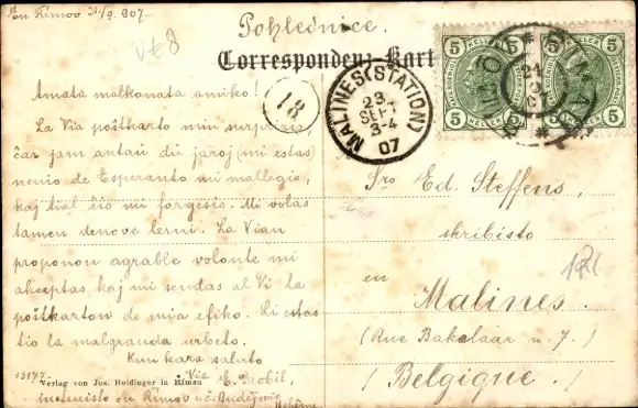 Zustand, siehe Scan, gelaufen, 1907 - ca 40 cm X 26 cm