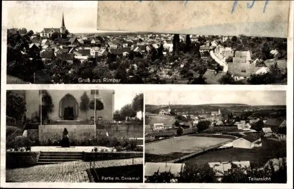 Ak Rimpar in Unterfranken, Gesamtansicht, Denkmal, Teilansicht