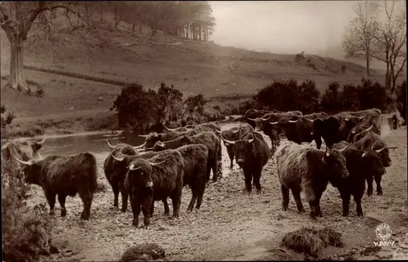 Ak Rinder am Fluss, Wiese, Bäume