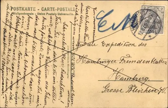 Zustand, siehe Scan, gelaufen, 1905 - ca 14 cm X 9 cm