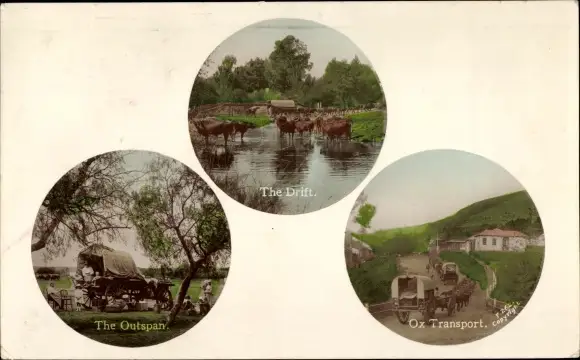 Ak Rinderkarren, Rinder im Fluss, abgespannt