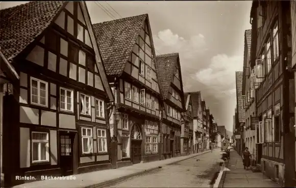 Ak Rinteln an der Weser, Bäckerstraße, Fachwerkhäuser