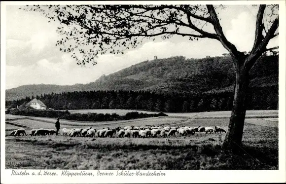 Ak Rinteln an der Weser, Bremer Schülerwanderheim, Klippenturm, Schafherde