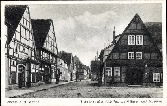 Ak Rinteln an der Weser, Brennerstraße, Fachwerkhäuser, Museum