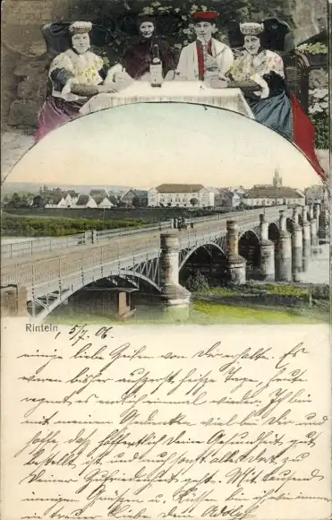 Ak Rinteln an der Weser, Brücke, Menschen in Trachten
