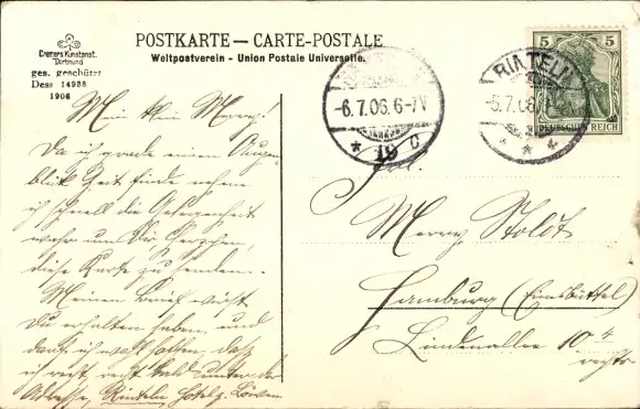 Zustand, siehe Scan, gelaufen, 1906 - ca 9 cm X 14 cm
