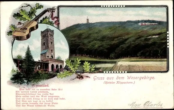Ak Rinteln an der Weser, Klippenturm, Weserlied
