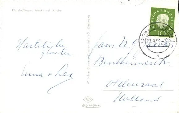 Zustand, siehe Scan, gelaufen, 1959 - ca 9 cm X 14 cm