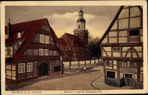 Ak Rinteln an der Weser, Museum, St. Nikolaikirche, Fachwerkhäuser