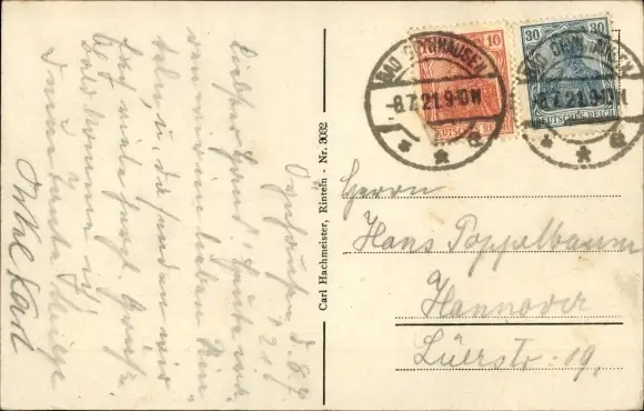 Zustand, siehe Scan, gelaufen, 1921 - ca 14 cm X 9 cm