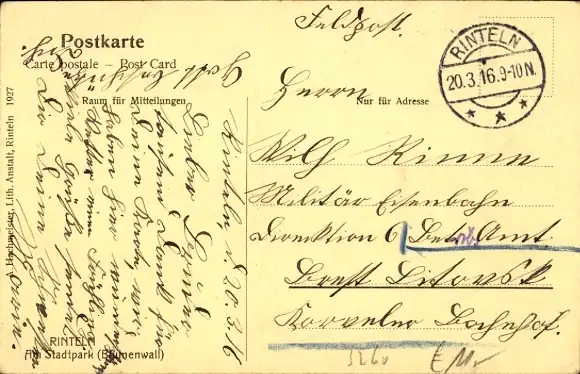 Zustand, siehe Scan, gelaufen, 1916 - ca 14 cm X 9 cm