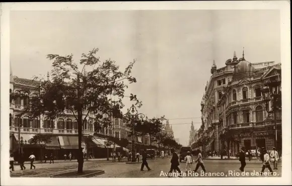 Ak Rio de Janeiro Brasilien, Avenida Rio Branco, Café