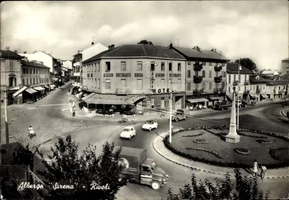 Ak Rivoli Torino Turin Piemonte, Albergo Sirena, Straßenpartie