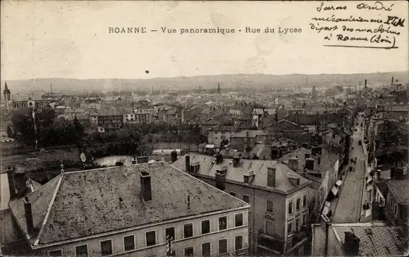 Ak Roanne Loire, Panoramablick, Rue du Lycee