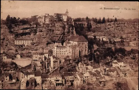Ak Roc Amadour Rocamadour Lot, von vorne gesehen