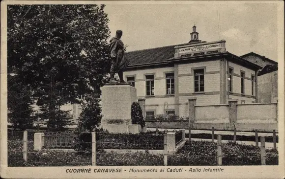 Ak Rocca Canavese Piemonte, Monumento ai Caduti, Asilo Infantile