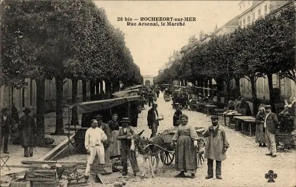Ak Rochefort sur Mer Charente Maritime, Rue Arsenal, Markt