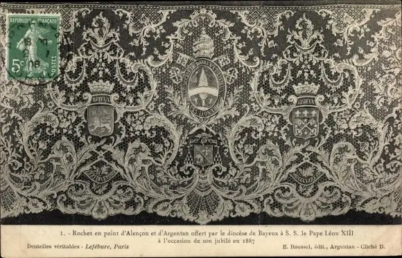 Ak Rochet en point d'Alencon et d';Argentan offert a Pape Leon XIII, Spitzen