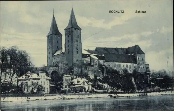 Ak Rochlitz an der Mulde, Schloss, Winteransicht