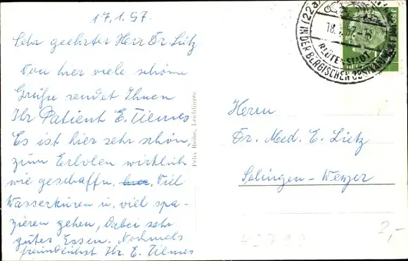 Zustand, siehe Scan, gelaufen, 1957 - ca 14 cm X 9 cm
