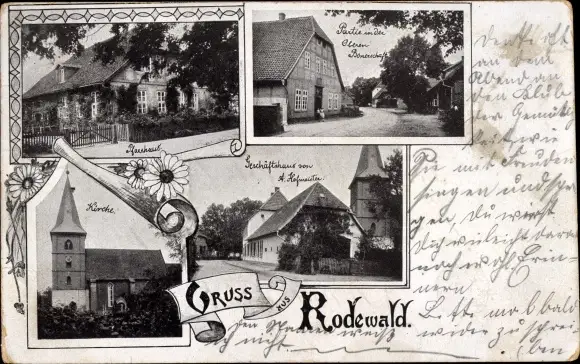 Ak Rodewald Steimbke Niedersachsen, Geschäftshaus, Kirche, Pfarrhaus