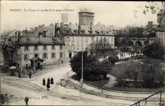 Ak Rodez Aveyron, Poste, Jardin de la Place d'Armes
