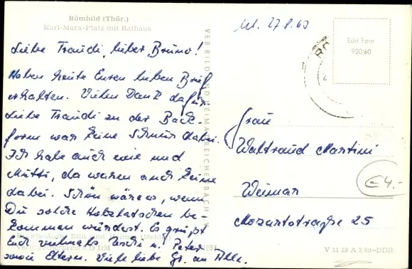 gelaufen 1960, Briefmarke entfernt, sonst guter Zustand