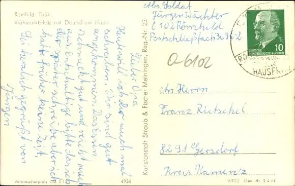 Ak Römhild in Thüringen, Viehmarktplatz mit Deutschem Haus