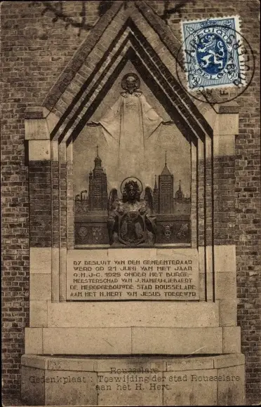 Ak Roeselare Roeselaere Rousselare Roulers Westflandern, Gedenkplaat