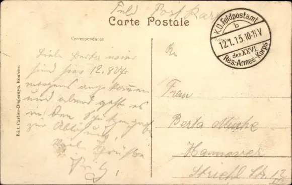 Zustand, siehe Scan, gelaufen, 1915 - ca 14 cm X 9 cm