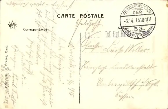 Zustand, siehe Scan, gelaufen, 1915 - ca 9 cm X 14 cm