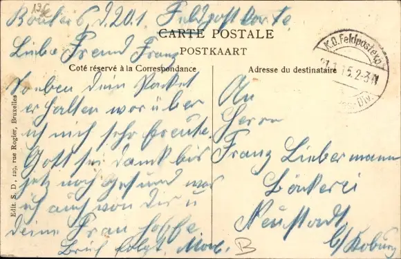 Zustand, siehe Scan, gelaufen, 1915 - ca 14 cm X 9 cm