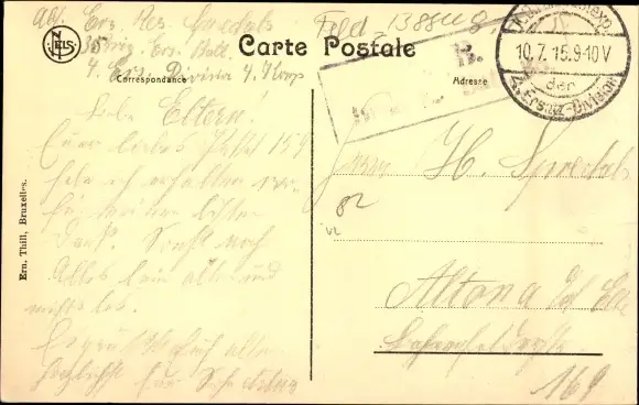 Zustand, siehe Scan, gelaufen, 1915 - ca 14 cm X 9 cm