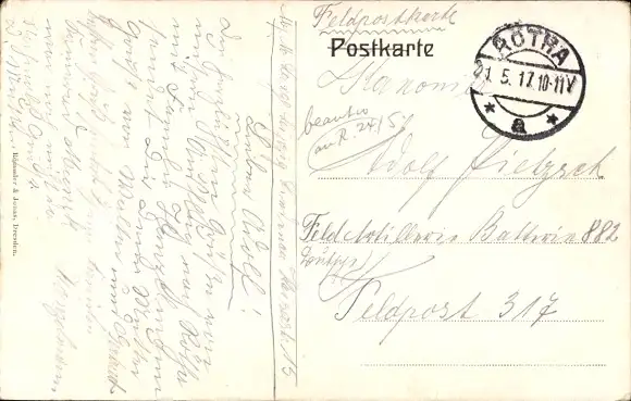 Zustand, siehe Scan, gelaufen, 1917 - ca 14 cm X 9 cm