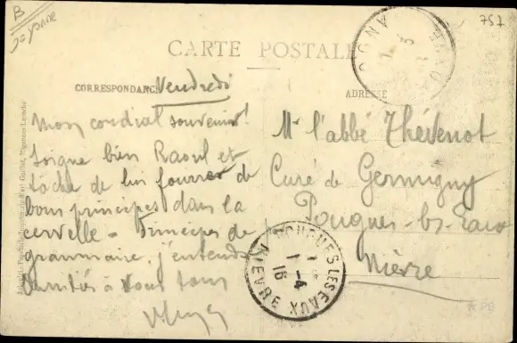 gelaufen 1916, Eckknick rechts unten, sonst guter Zustand