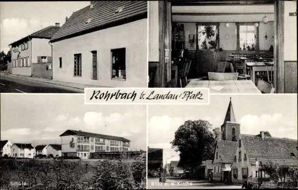 Ak Rohrbach in der Pfalz, Schule, Straßenpartie, Kirche