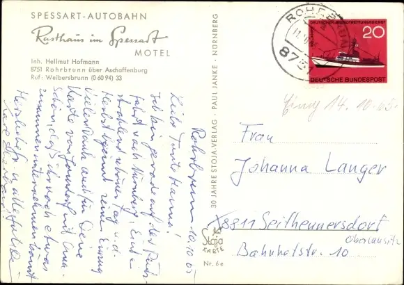 Zustand, siehe Scan, gelaufen, 1965- Inh.: Hellmut Hofmann - ca 15 cm X 11 cm