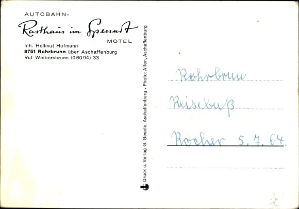 Ak Rohrbrunn Weibersbrunn im Spessart, Autobahn Rasthof Motel im Spessart