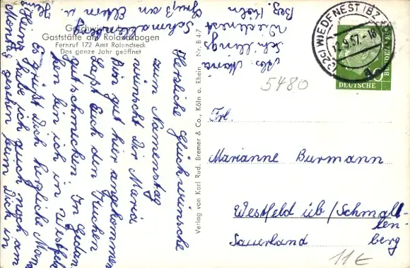 Zustand, siehe Scan, gelaufen, 1957 - ca 14 cm X 9 cm